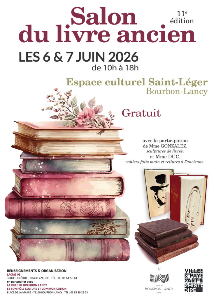 - Vous êtes libraires, bouquinistes ou vous avez une carte professionnelle, vous souhaitez participer à un de ces salons contactez-nous : par téléphone au 06 77 89 22 49, ou par mail à contact@lacme03.fr pour connaître toutes les modalités concernant ces salons.